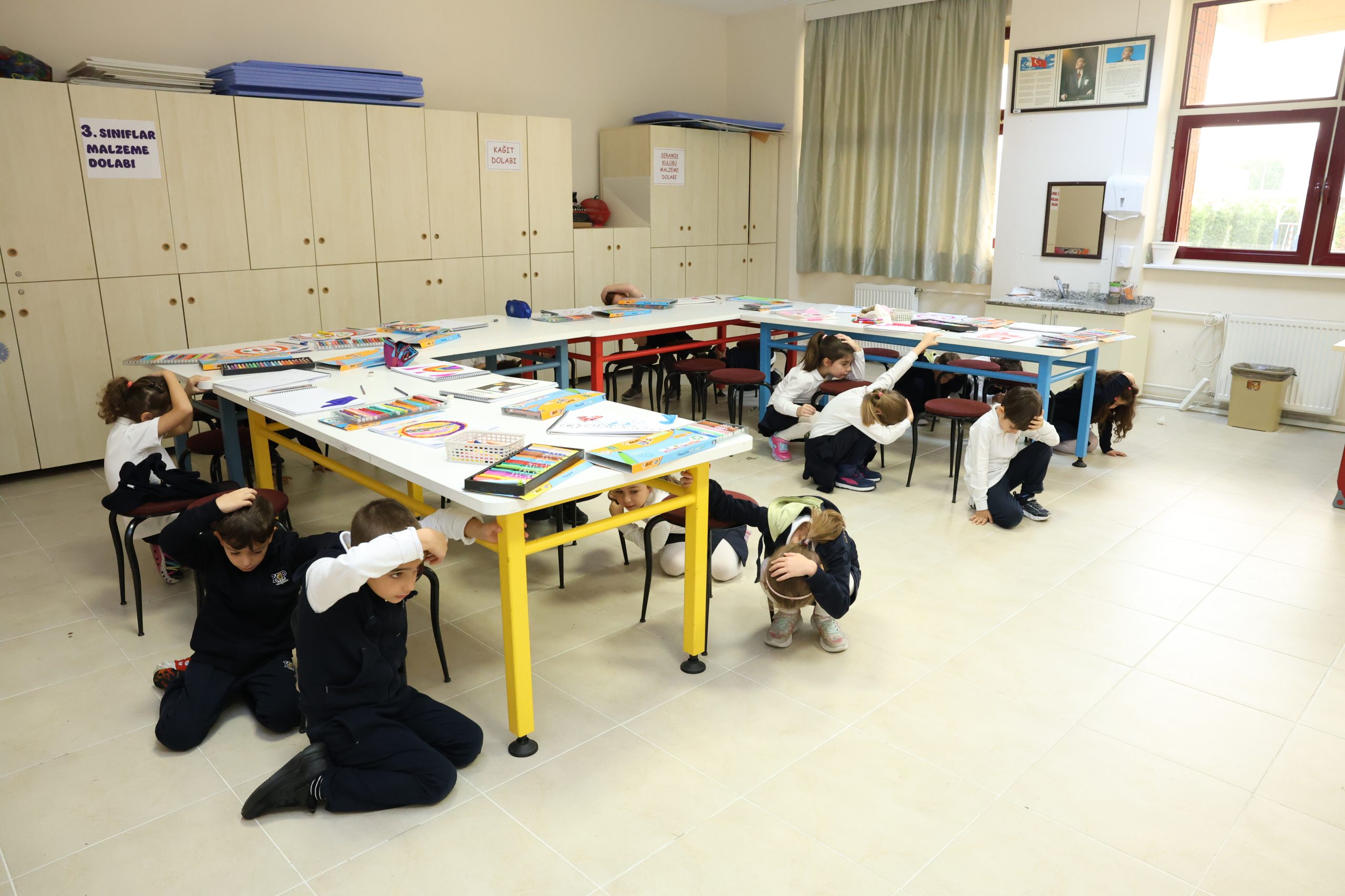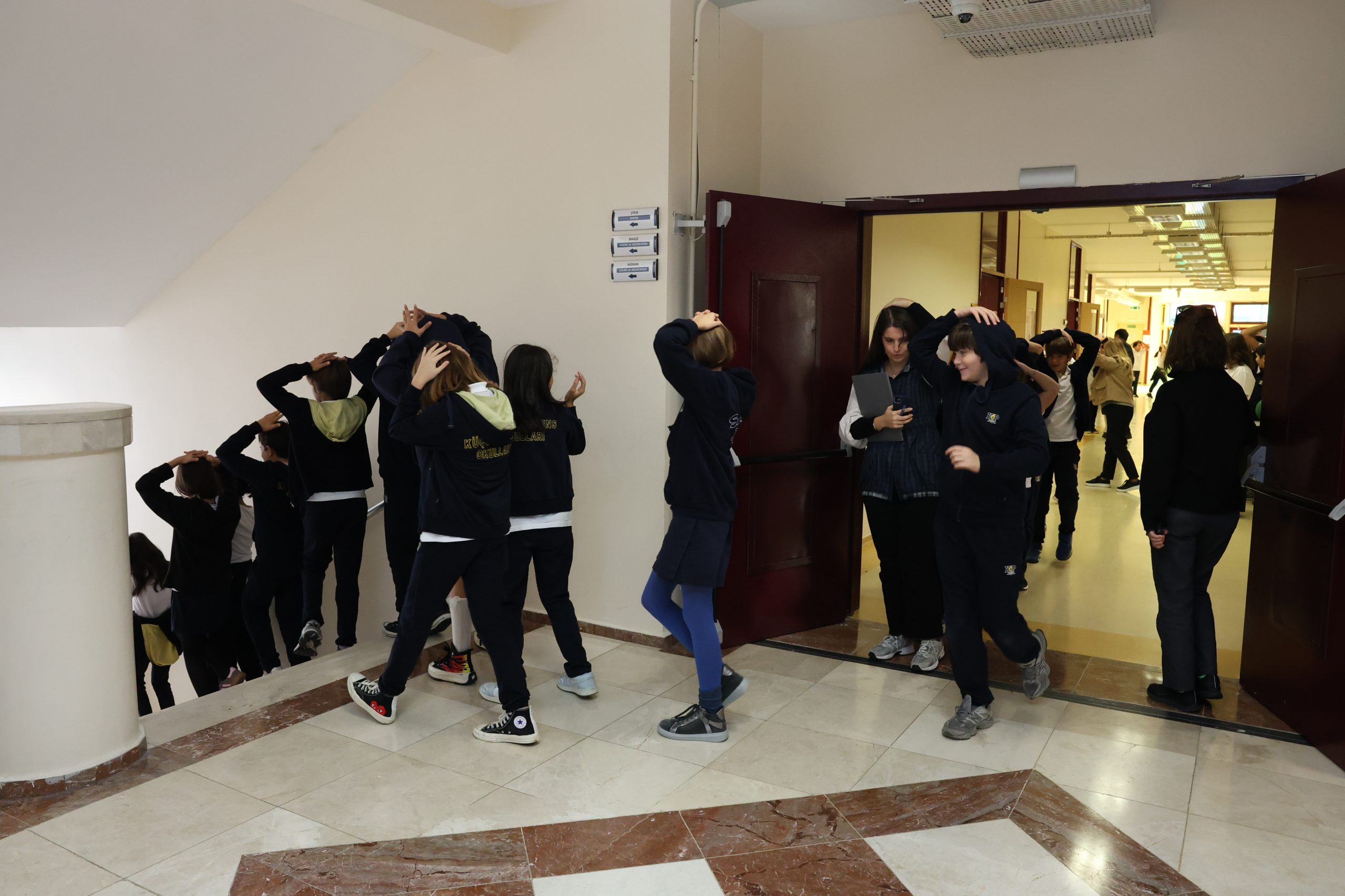 “Afetler ve Dayanıklılık Ayı” kapsamında öğrencilerimizin afetlere karşı bilinçlenmesi ve olası durumlara karşı hazırlıklı olmaları amacıyla 13 Ekim Pazartesi günü, okulumuzda “Afetlere Hazırlık ve Toplumsal Dayanıklılık Etkinliği” gerçekleştirildi. Etkinlikte, güvenli tahliye ve doğru davranış biçimleri öğrencilerimize uygulamalı bir şekilde gösterildi ve eş zamanlı olarak “Afet Farkındalık Eğitimi” verildi. Ardından “Deprem Tahliye Tatbikatı” başarıyla uygulandı.
