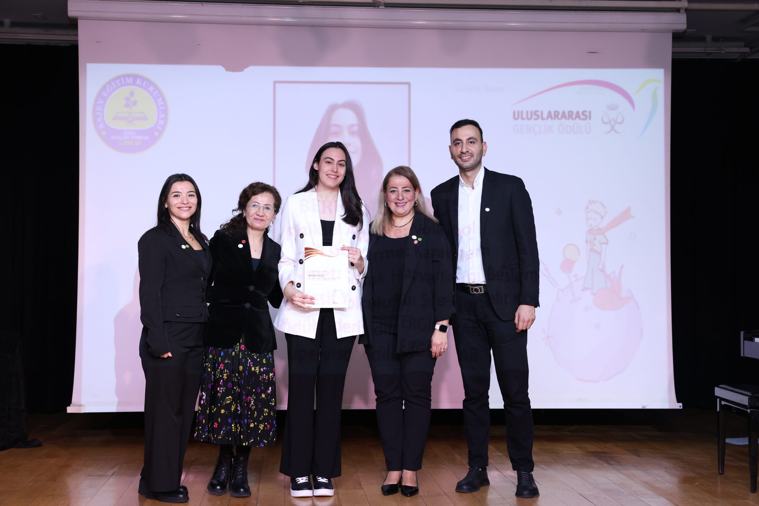 "16 Aralık'ta Uluslararası Gençlik Ödülü – Bronz Ödül Töreni'nde 19 öğrencimiz; aylar süren emek, özveri ve gelişim yolculuklarının sonunda hak ettikleri ödüllerle buluştu. 130'dan fazla ülkede geçerliliği olan bu ödülü almaya hak kazanan gençlerimizin beceri geliştirme, spor, dayanıklılık ve gönüllülük alanlarında gösterdikleri çaba ile hepimize ilham verdikleri bu anlamlı günde, UGO-Türkiye Ulusal Koordinatörlüğünden değerli misafirlerimizi de okulumuzda ağırlamaktan büyük mutluluk duyduk. Ödül alan tüm öğrencilerimizi gönülden tebrik ediyor, bu süreçte emeği geçen tüm öğretmenlerimize teşekkür ediyoruz."