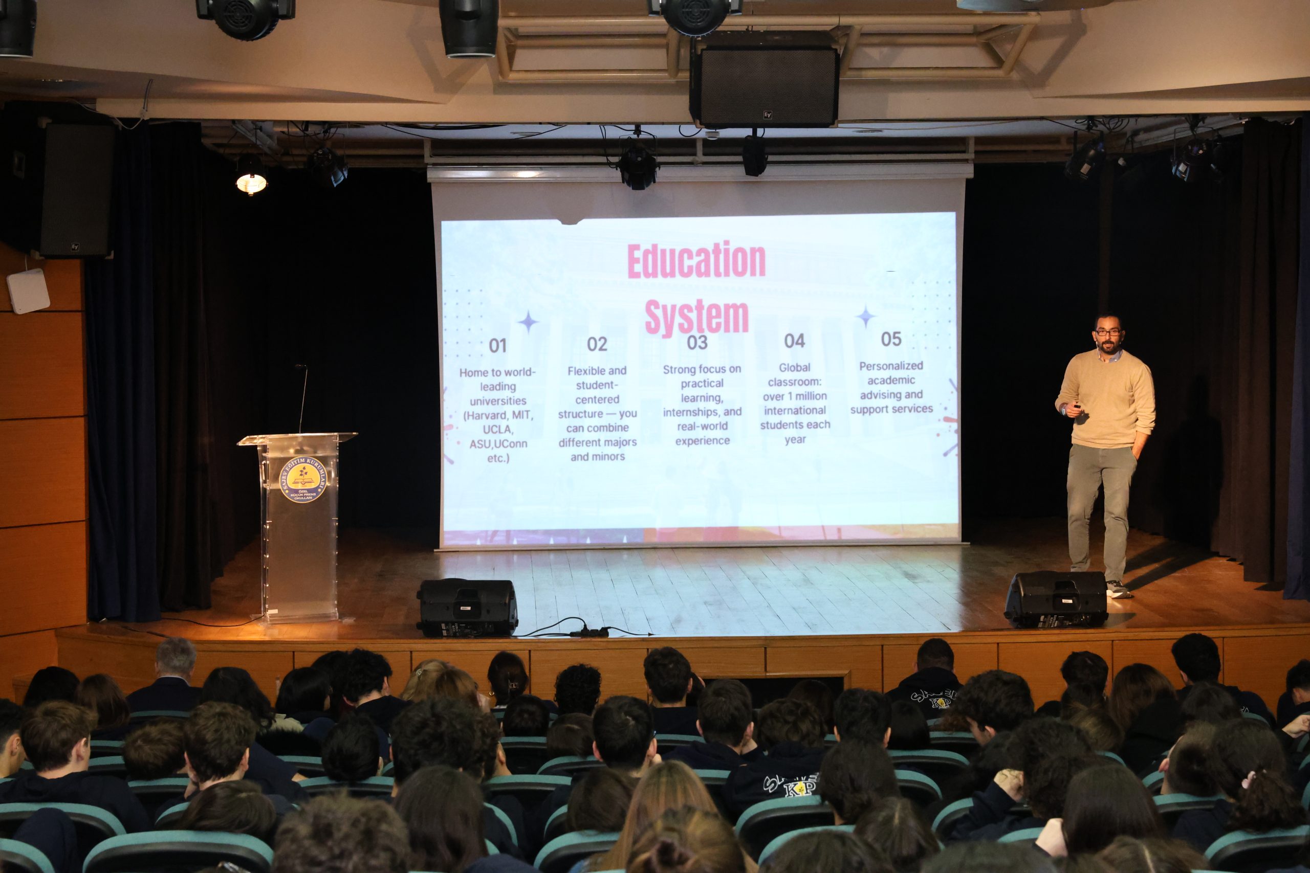 SAJEV Özel Küçük Prens Lisesi Psikolojik Danışmanlık ve Rehberlik Birimi olarak öğrencilerimizin akademik ve mesleki yönelimlerini desteklemek amacıyla 19-20 Kasım 2025 tarihlerinde “Yurt Dışı Üniversite Tanıtımı, Hazırlık ve Başvuru Süreçleri Sempozyumu”nu gerçekleştirdik. İki gün boyunca öğrencilerimiz; İngiltere, İrlanda, Amerika, Kanada, İtalya ve Fransa’daki üniversite sistemlerini, başvuru süreçlerini ve kabul kriterlerini uzman isimlerden dinlediler.