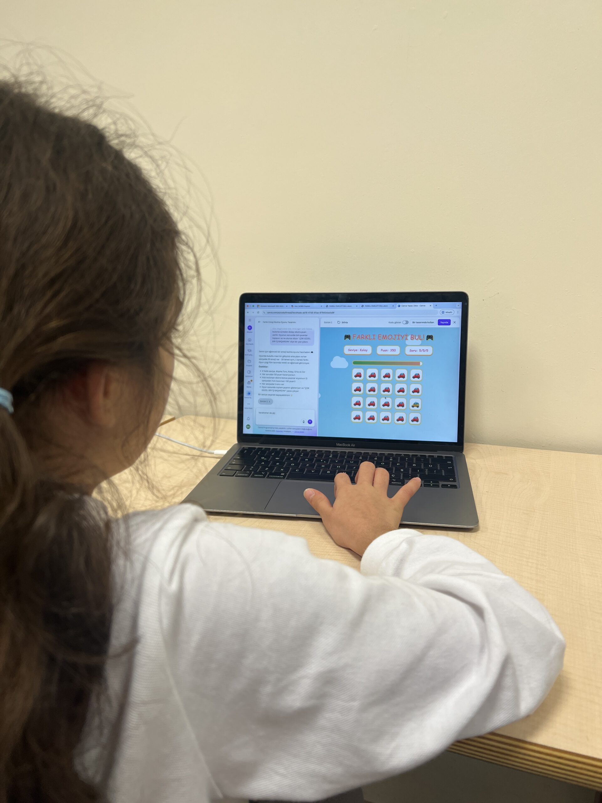 Öğrencilerimiz, öncelikle bir “Word” dosyasında 1. sınıf öğrencileri için tasarladıkları oyunlara ait detaylı bir plan hazırladılar. Bu planda oyunun amacını, oyunun hangi kazanıma uygun olduğunu, oyunun tasarımını ve içeriğini yazılı hâle getirdiler. Ardından hazırladıkları bu içerikleri, “Canva Yapay Zekâ” desteğiyle interaktif dijital oyunlara dönüştürdüler. Projenin son aşamasında ise 5. sınıf öğrencilerimiz, 1. sınıf öğrencilerimizin derslerine konuk oldular. Kendi ürettikleri oyunları, 1. sınıf öğrencilerimize önce tanıttılar; ardından bu oyunları oynatarak onlara rehberlik ettiler.