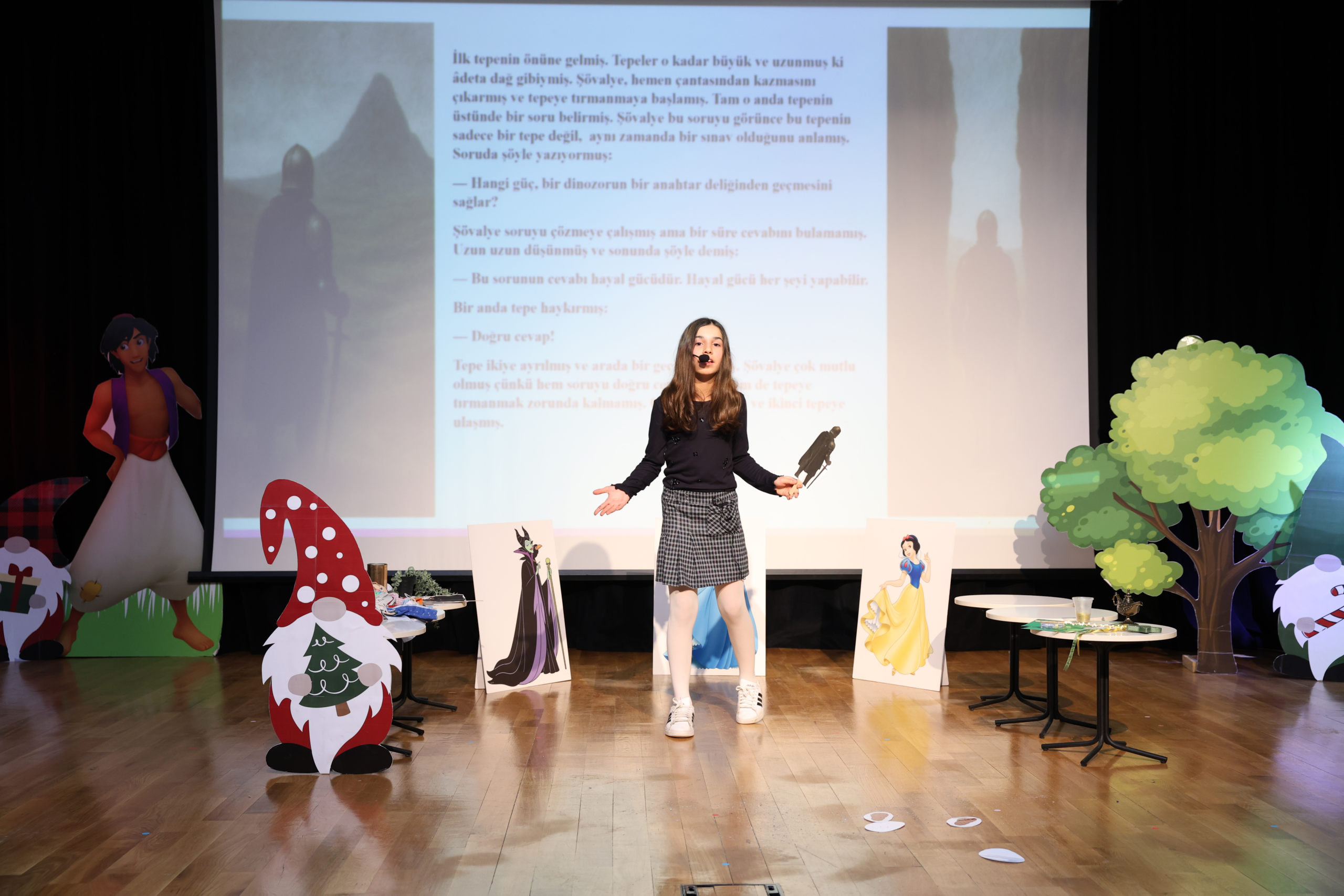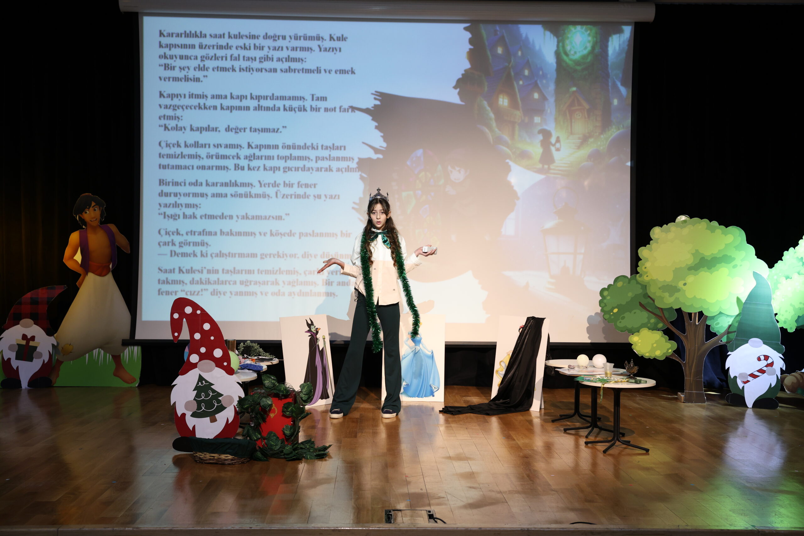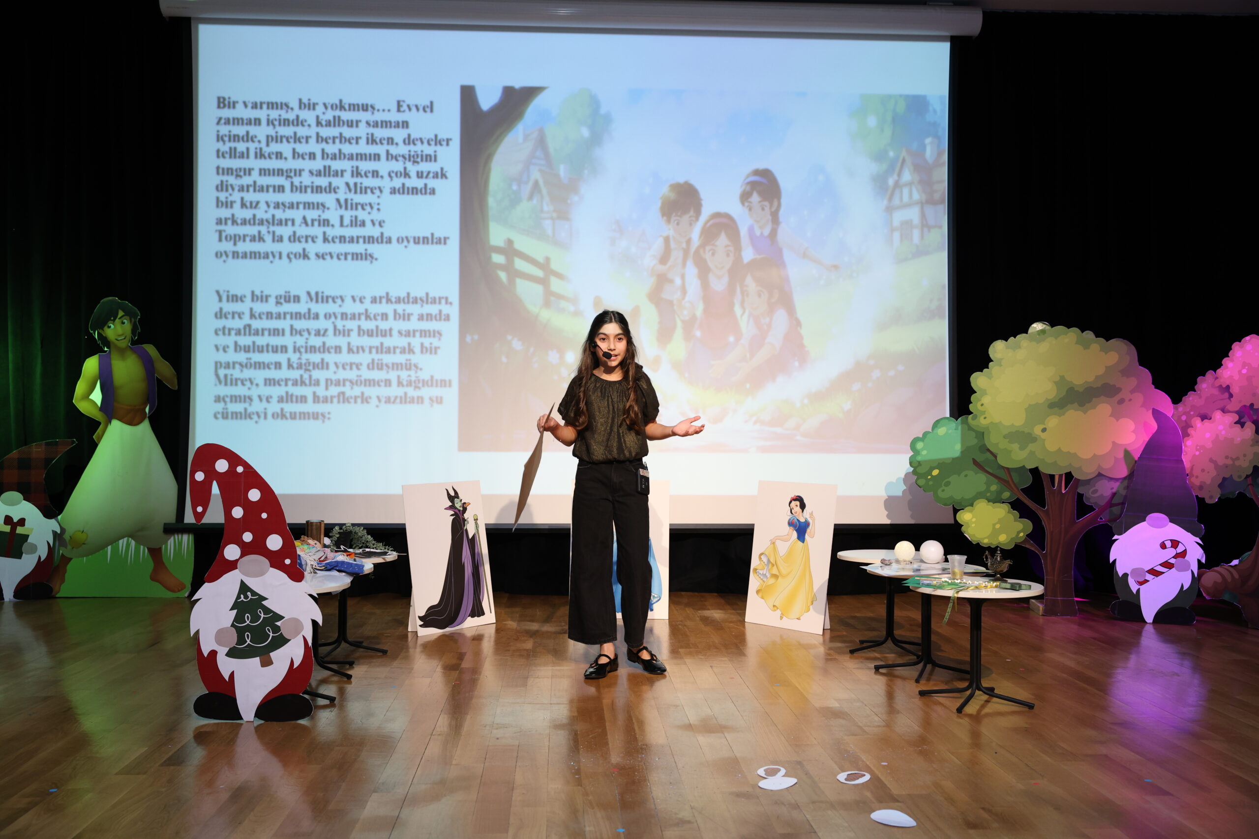 Yazılan masallar, Türkçe öğretmenlerimiz tarafından titizlikle değerlendirildi. Dereceye giren öğrencilerimiz, eserlerini dijital masal kitaplarına dönüştürerek masallarına yeni bir soluk kazandırdı. 15 Ocak 2025 Perşembe günü gerçekleştirilen yarışmada öğrencilerimiz, masallarını görsel ögeler eşliğinde anlatarak dinleyicileri masal dünyasında keyifli bir yolculuğa çıkardı.